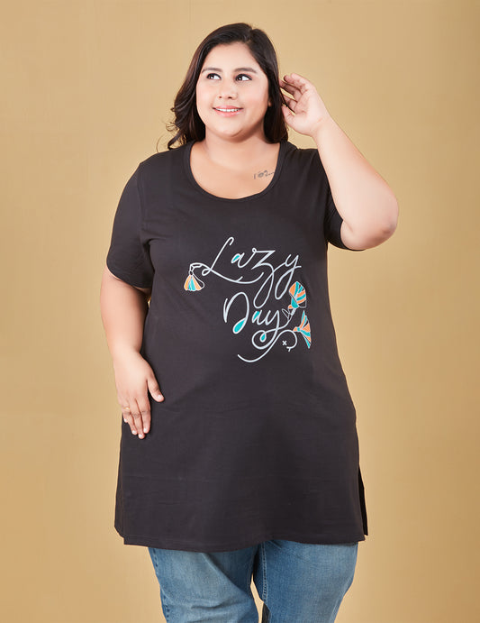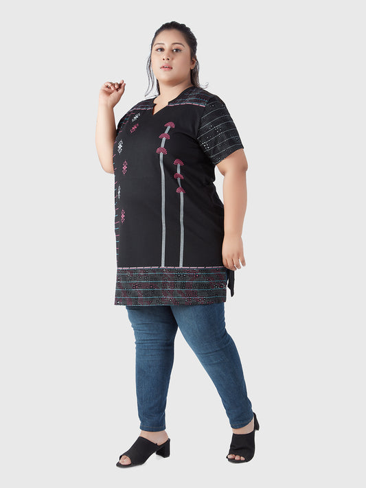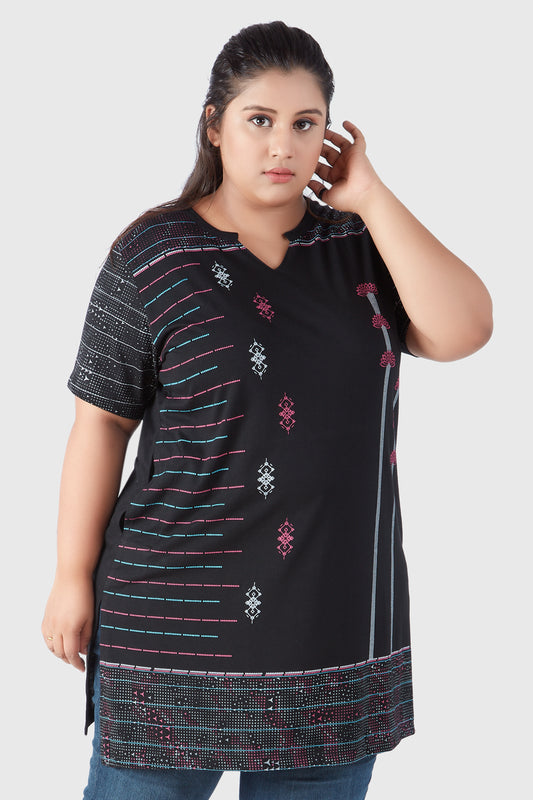 Regular price ₹ 795.00Sale price ₹ 795 Regular priceUnit price per₹ 1,69953% OFFPlus Size Printed Long Tops For Women Half Sleeves - Black