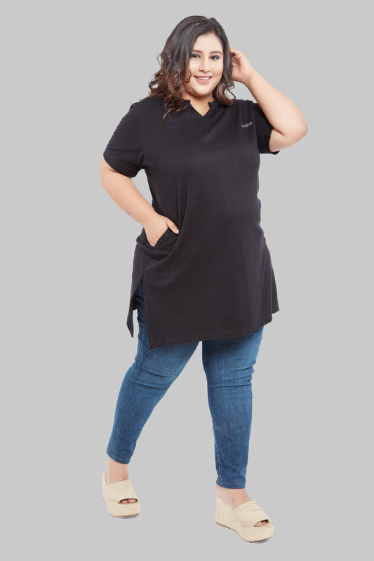 Regular price ₹ 750.00Sale price ₹ 750 Regular priceUnit price per₹ 1,49550% OFF3XL 4XL 5XLLong Line Black Top For Women - Plus Size