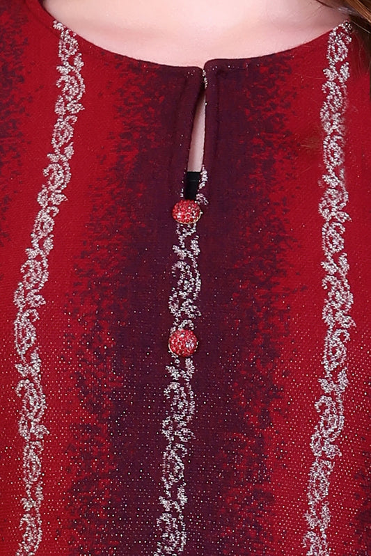 Regular price ₹ 3,350.00Sale price ₹ 3,350 Regular priceUnit price per₹ 2,500-34% OFFRich Maroon & Red Ombre Knitted Woolen Winter Co-ord Set for Women | Vertical Stripe & Floral Motif Design
