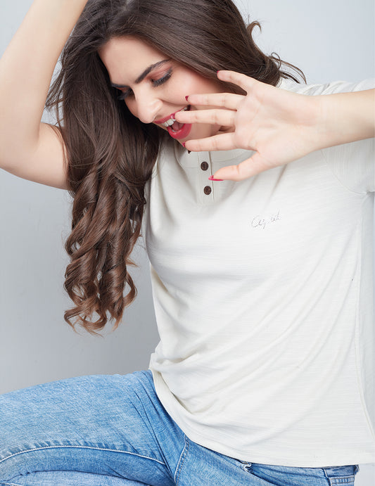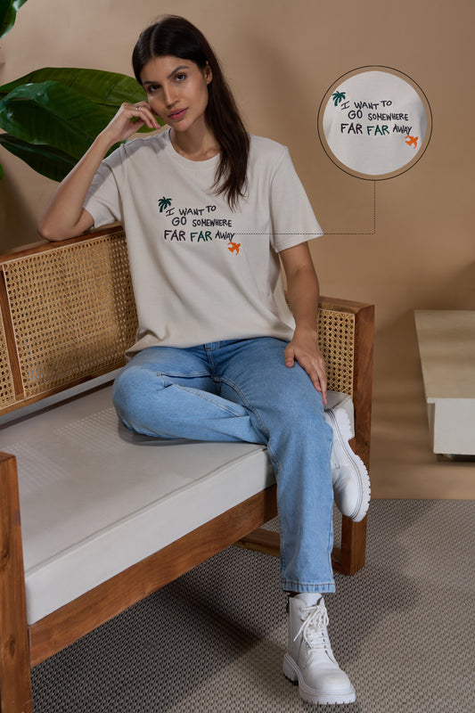 Regular price ₹ 485.00Sale price ₹ 485 Regular priceUnit price per₹ 89963% OFFWomen Textured Cotton Relaxed Fit T-Shirt: Beige