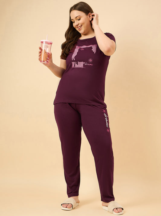 Cotton Nightsuit For Women - Pyjama Set -Purple