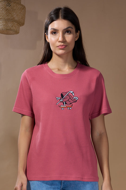 Regular price ₹ 435.00Sale price ₹ 435 Regular priceUnit price per₹ 89967% OFFWomen Textured Cotton Relaxed Fit T-Shirt: Primrose