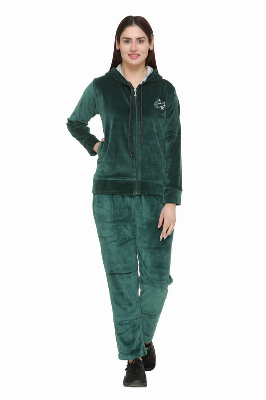 Regular price ₹ 650.00Sale price ₹ 650 Regular priceUnit price per₹ 1,49962% OFFWinter Cotton Velvet Tracksuit For Women - Bottle Green