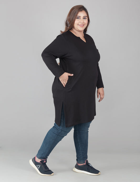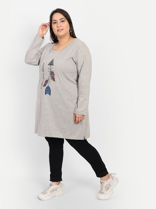 Cotton Long Top for Women Plus Size - Full Sleeve - Grey