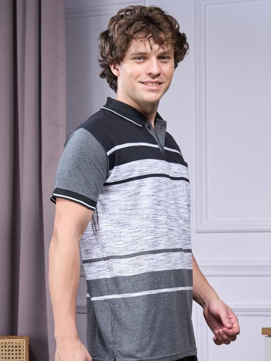 Jinxer Men Loungewear Cotton Pajama T-Shirt Set-Black