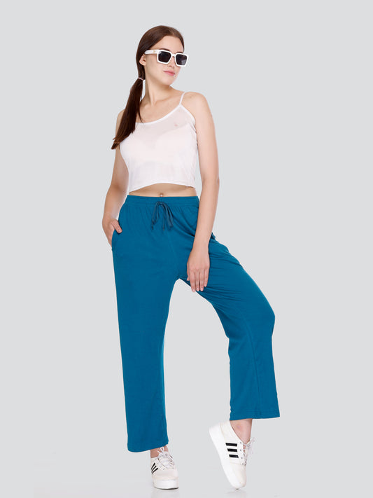 Regular price ₹ 599.00Sale price ₹ 599 Regular priceUnit price per₹ 1,45068% OFFHigh Rise Cotton Straight Teal Blue Trackpants