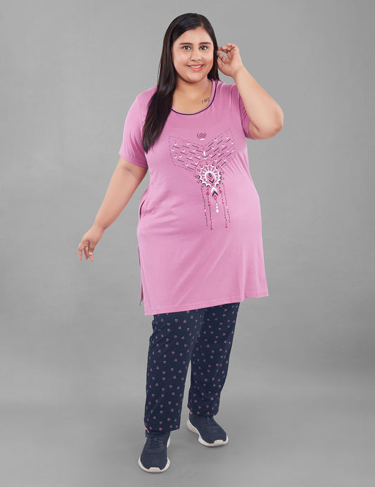 Regular price ₹ 695.00Sale price ₹ 695 Regular priceUnit price per₹ 1,85072% OFFCotton Nightsuit For Women - Long Top & Pyjama Set - Mauve&Black