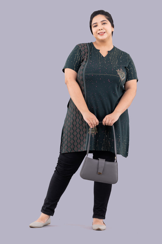 Regular price ₹ 599.00Sale price ₹ 599 Regular priceUnit price per₹ 1,45068% OFFPlus Size Printed Long Tops For Women Half Sleeves - Bottle Green