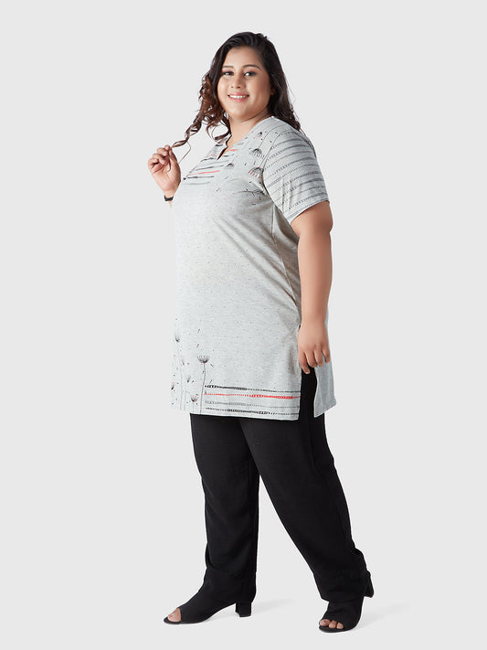Regular price ₹ 849.00Sale price ₹ 849 Regular priceUnit price per₹ 1,79953% OFFPlus Size Printed Long Tops For Women Half Sleeves - Grey