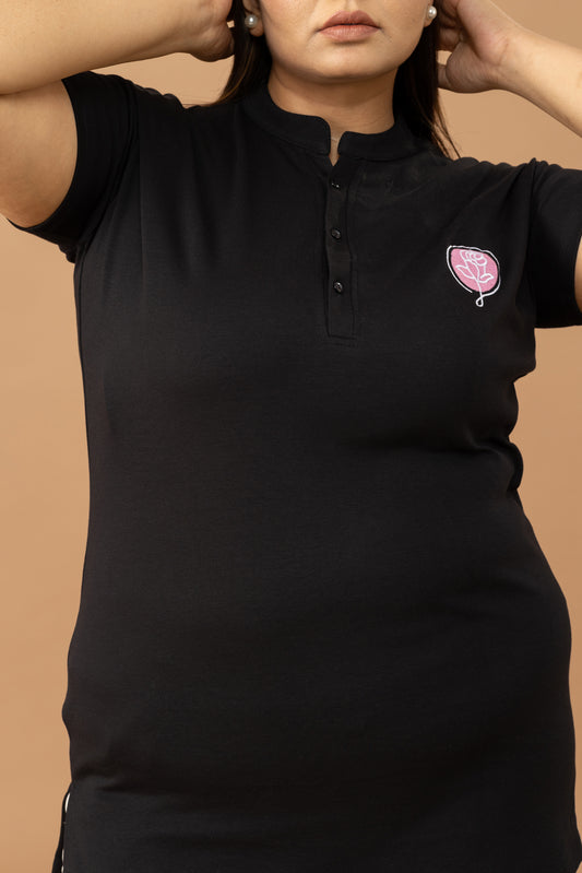 Casual Cotton Short Kurti Tops- Black
