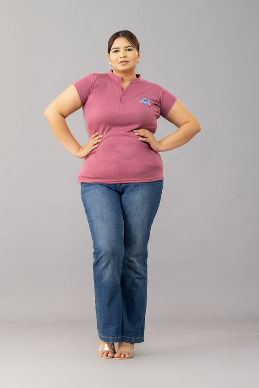 Casual Cotton Short Kurti Tops-Dark Pink