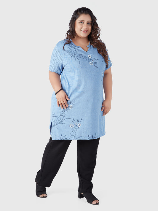 Regular price ₹ 799.00Sale price ₹ 799 Regular priceUnit price per₹ 1,39956% OFFPlus Size Printed Long Tops For Women Half Sleeves T-shirts - Sky Blue