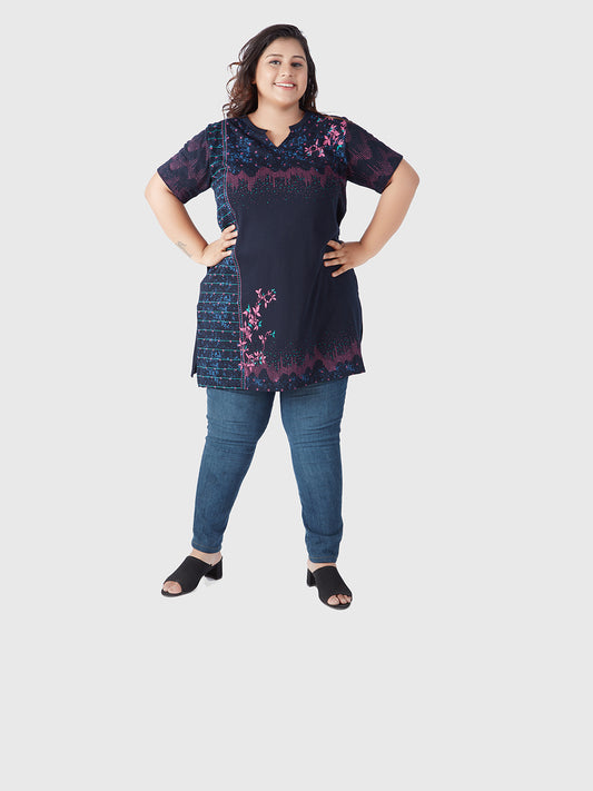 Regular price ₹ 599.00Sale price ₹ 599 Regular priceUnit price per₹ 1,39967% OFFPlus Size Printed Long Tops For Women Half Sleeves T-shirts - Navy Blue
