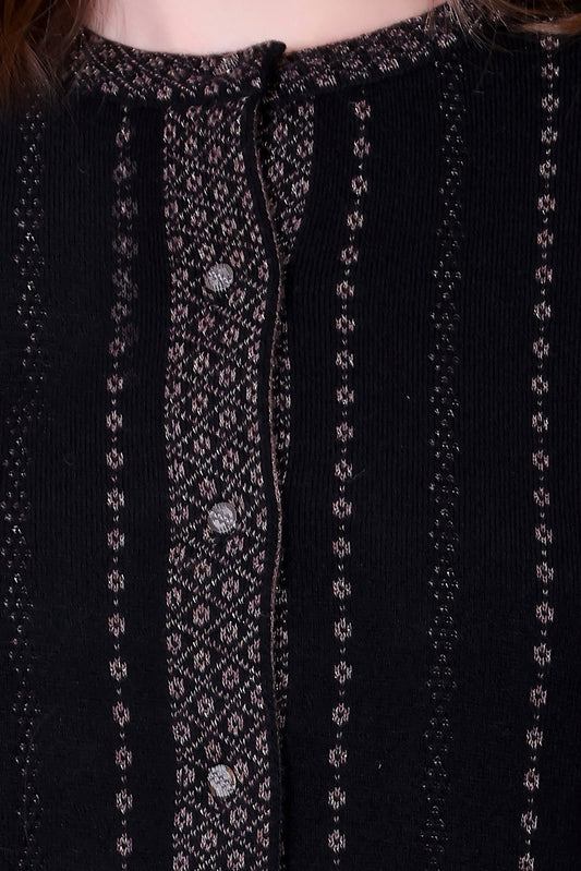 Regular price ₹ 850.00Sale price ₹ 850 Regular priceUnit price per₹ 1,80053% OFFFancy Jacquard Knit Cardigan -Black