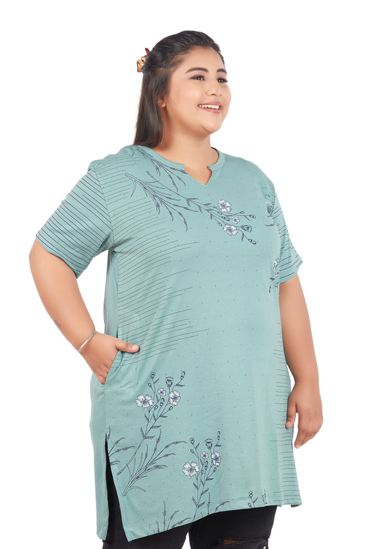 Regular price ₹ 495.00Sale price ₹ 495 Regular priceUnit price per₹ 89962% OFFPlus Size Printed Long Tops For Women Half Sleeves - Sage