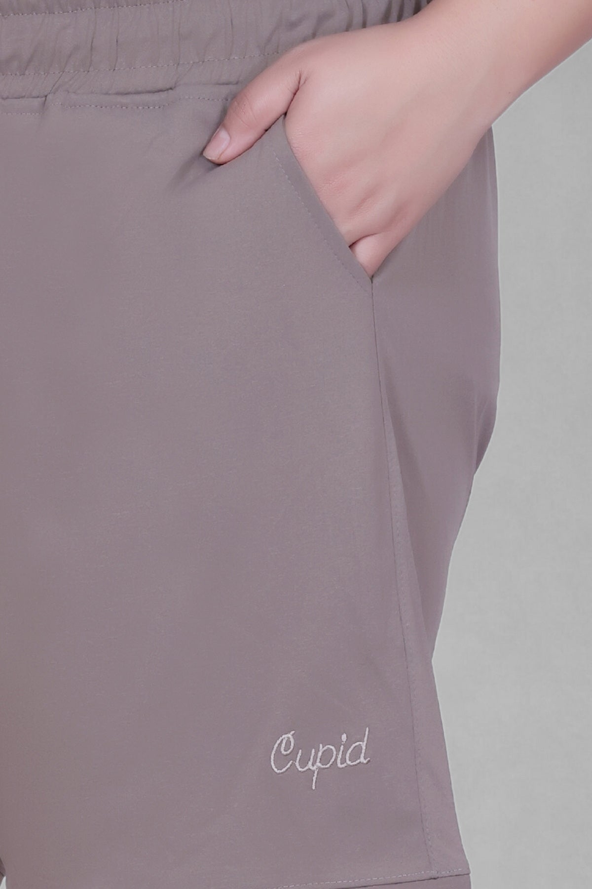 Women's High-Waisted Design Drawstring Waist Blended Regular Fit Shorts- Mocha