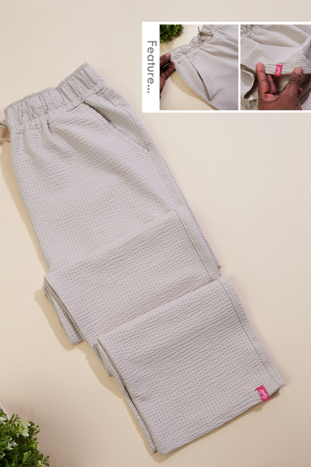 Women's High Rise Waffle Knit Track Pants-Ivory