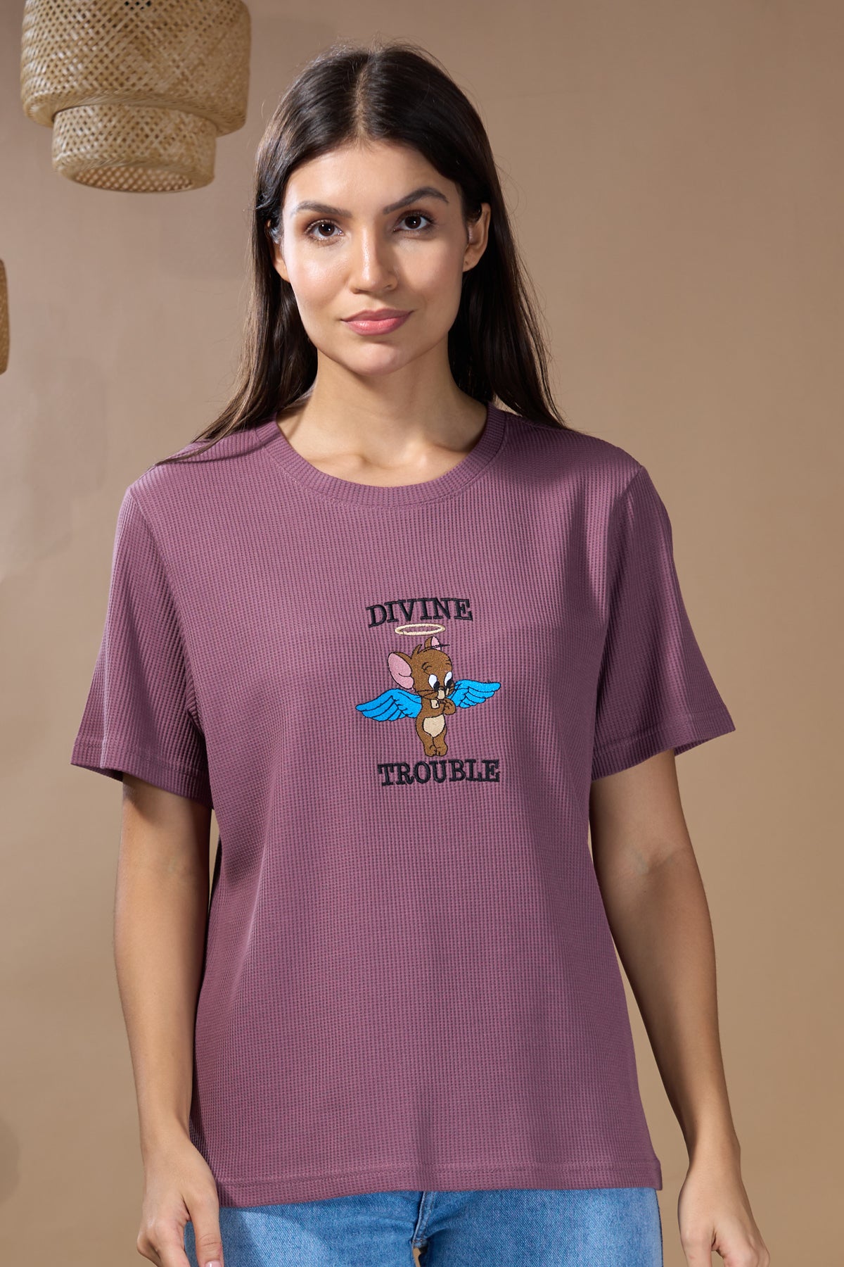 Bring a playful vibe to your everyday style with our Divine Trouble Textured Cotton T-Shirt. Perfect for those who love comfort with a touch of nostalgia and mischief!