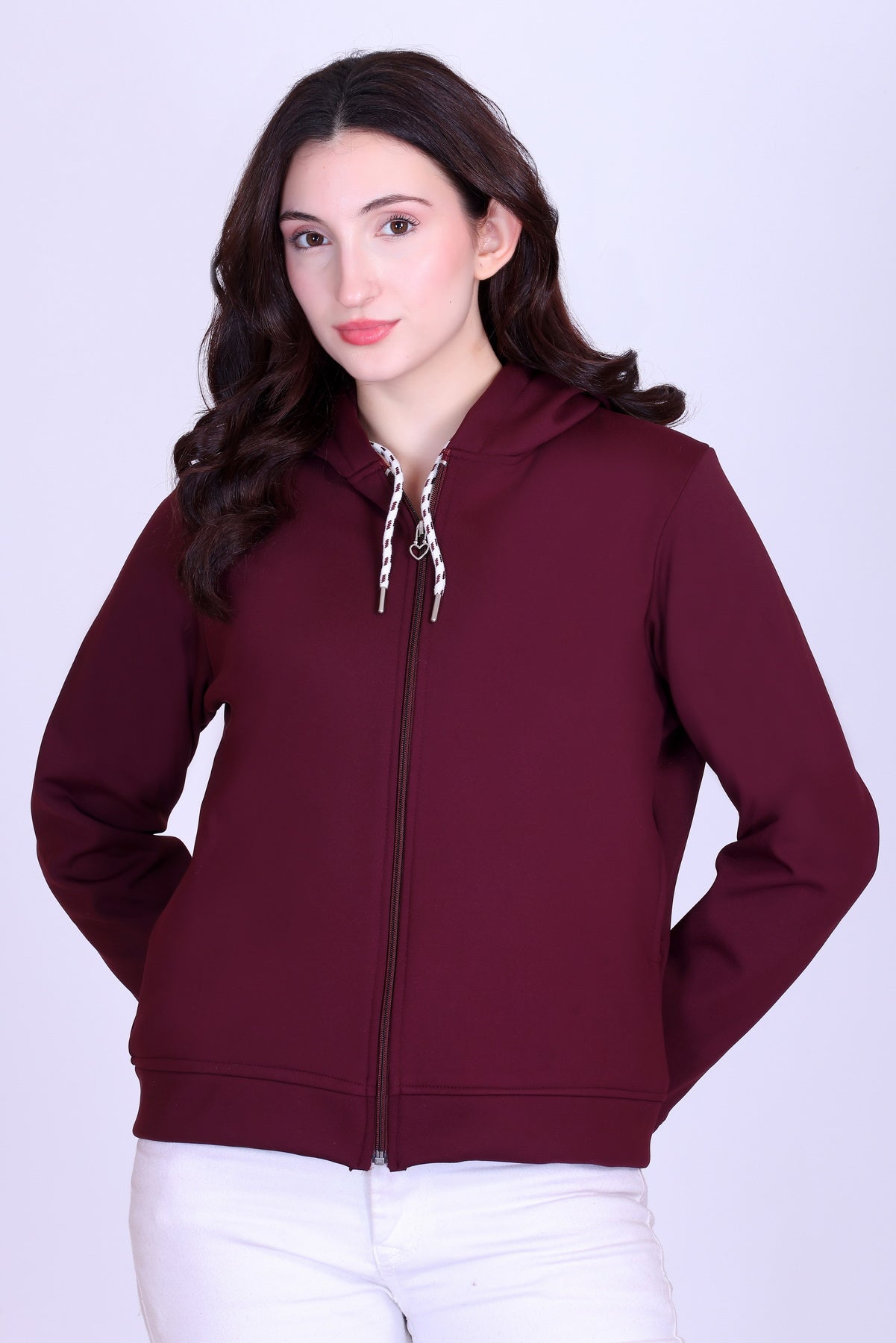 Upgrade your winter wardrobe with this stylish and functional women’s hooded jacket, designed to deliver warmth, comfort, and everyday versatility. Made using premium bonded fabric, this jacket features a dri-fit outer layer for a smooth, sporty finish and a soft fleece lining inside to keep you warm during cold days.