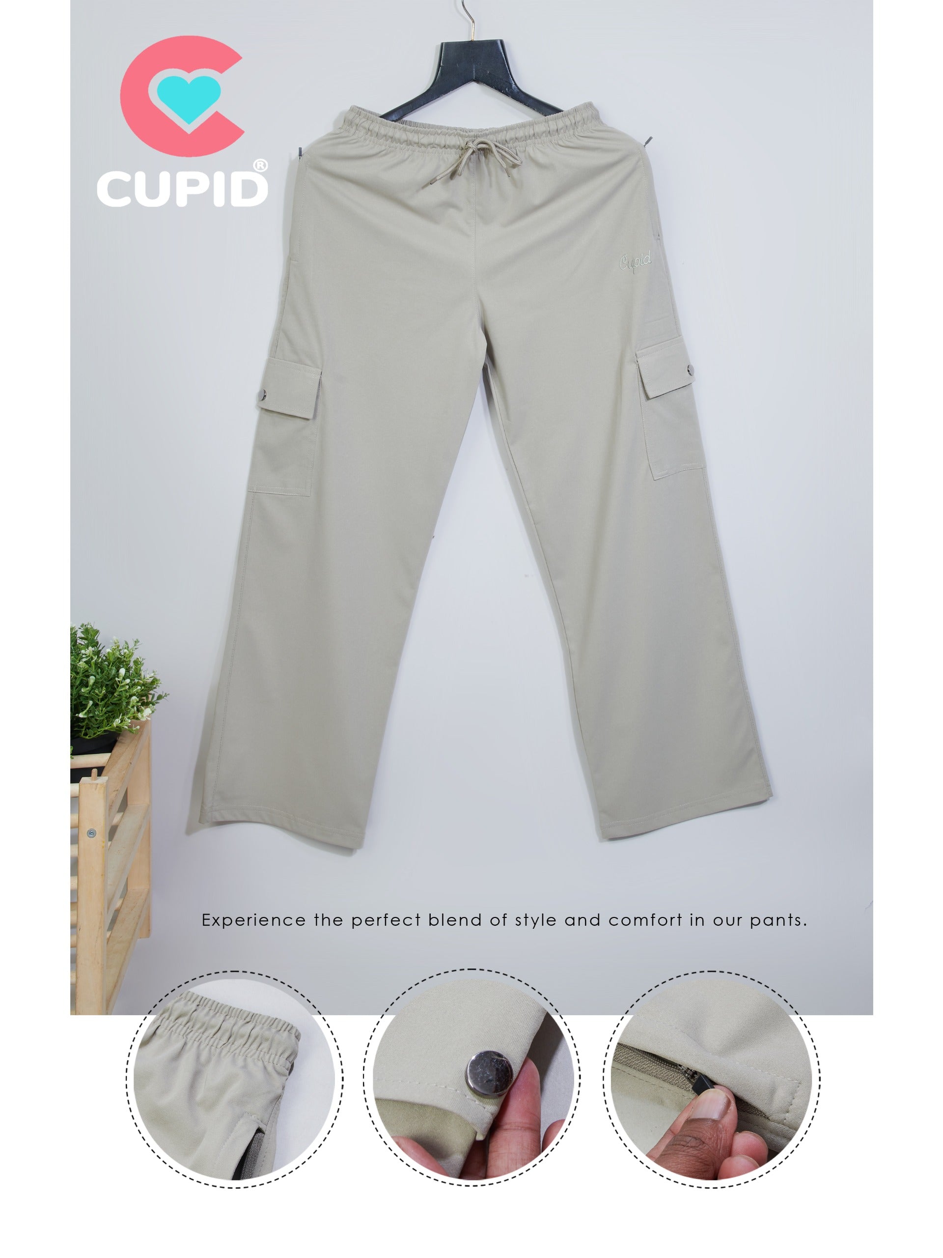Women Smart Straight Fit Easy Wash Cargo Pants- Grey